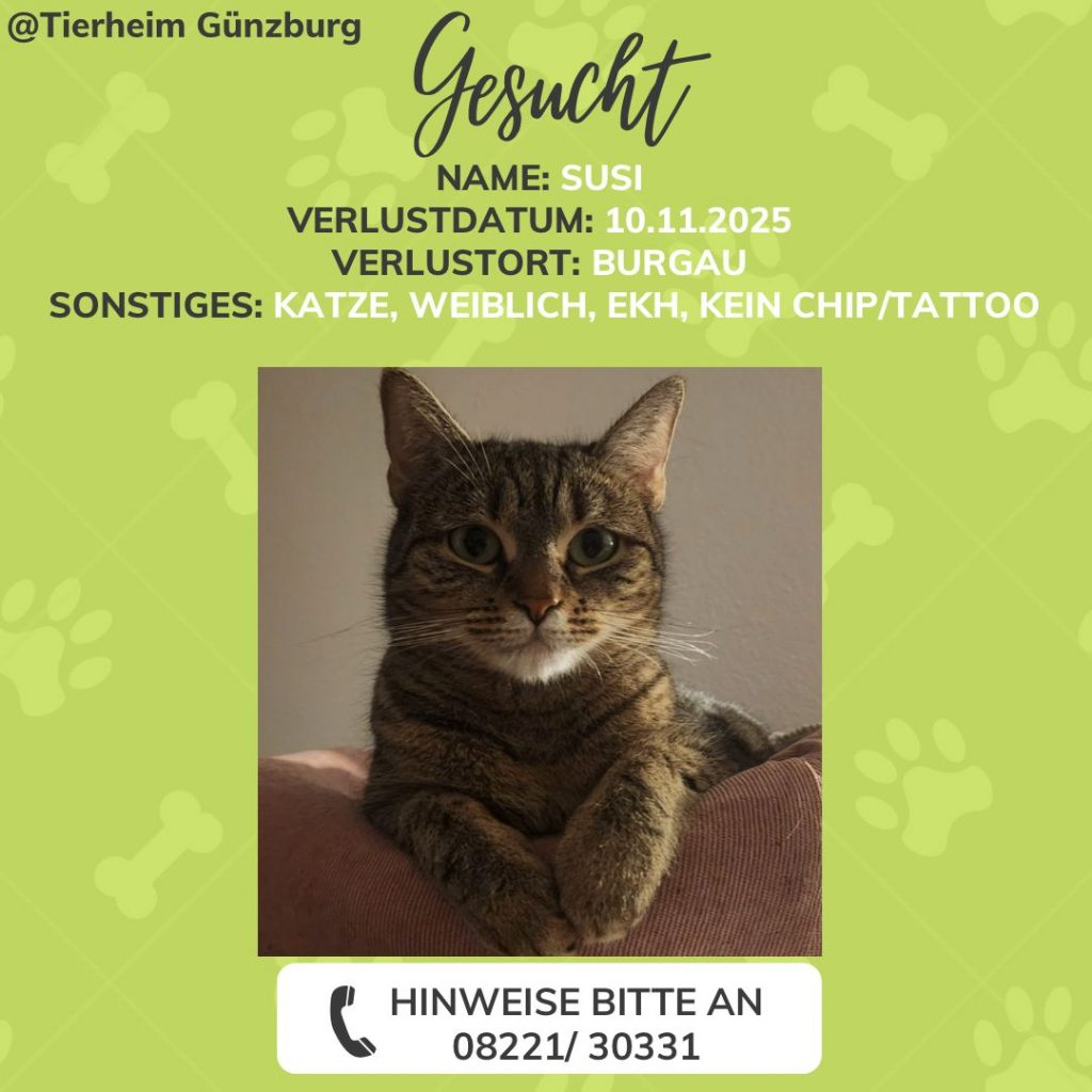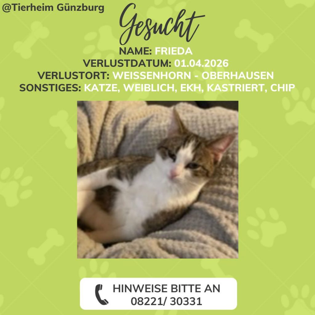 Kontaktieren Sie bitte direkt den Halter (sofern Angaben vorhanden), das Haustierregister TASSO oder das Tierheim „Arche Noah“ unter der Telefonnummer 08221 30331.